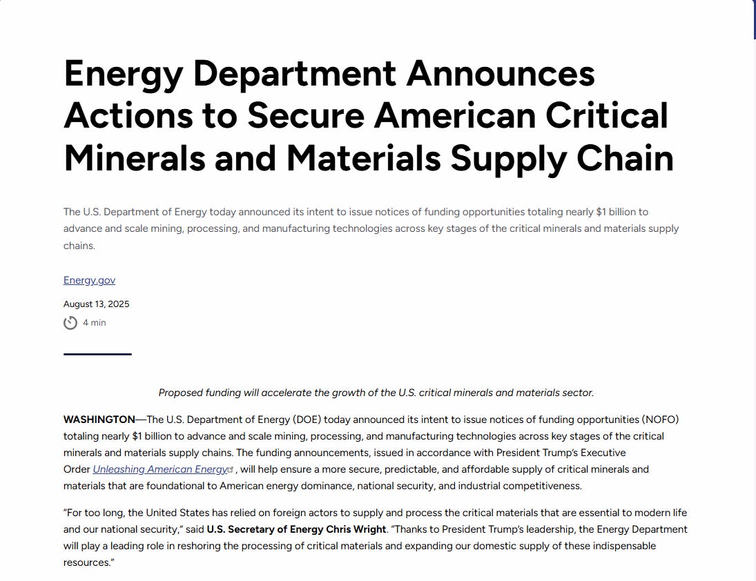Link: https://www.energy.gov/articles/energy-department-announces-actions-secure-american-critical-minerals-and-materials-supply