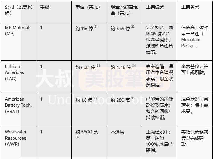 Lithium Americas #LAC: LAC 是 5 億美元電池材料撥款的頂級競爭者。其位於內華達州的 Thacker Pass 專案是該國最大且最先進的鋰資源之一,旨在生產電池級碳酸鋰 。該公司與通用汽車的合資企業既提供了滿足 50% 成本分攤的可靠夥伴,也保證了承購客戶,極大地降低了該專案商業計畫的風險 。對於一家處於開發階段的公司而言,其財務狀況穩健,市值約 6.33 億美元,現金部位約 4.46 億美元,為其推進專案提供了充足的運營空間 。
