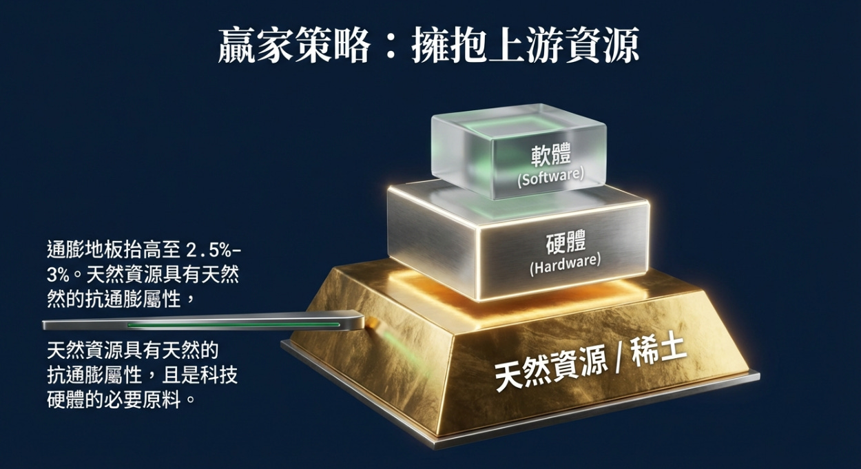 天然資源:在這種「黏性通膨」環境下,銅、鈾和稀土等上游資源股,具有天然的抗通膨屬性。