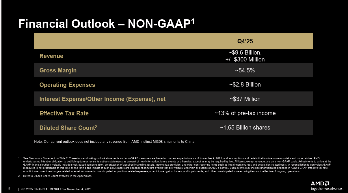 重要備註:此展望不包含向中國出貨的 MI308 GPU 收入。