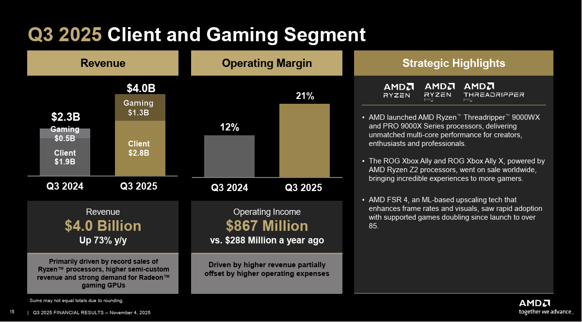 別只盯著 AI,AMD 傳統兩大塊也不是吃素的。