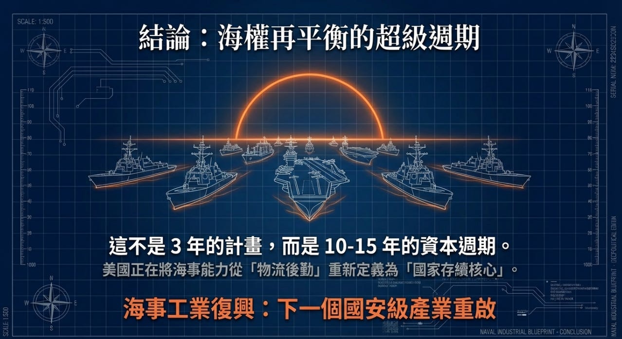 如果 SHIPS Act 通過、如果 MSTF 長期運作、如果北極與印太競爭持續升溫,那麼MAP 不是 2-3 年題材,而是 10-15 年的工業資本週期。但路還很長,基本上美國政府想要重建自己的製造能力在各個方面上,很可惜想要從以前棄硬選軟的三十年後,重返硬體製造能力,並不一定有想像中如此容易。