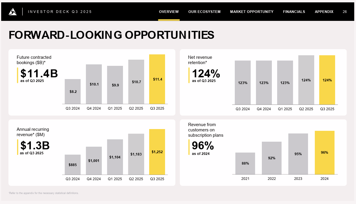 淨收入留存率高達 124%,證明舊客戶持續增購服務功能、黏性極強。
