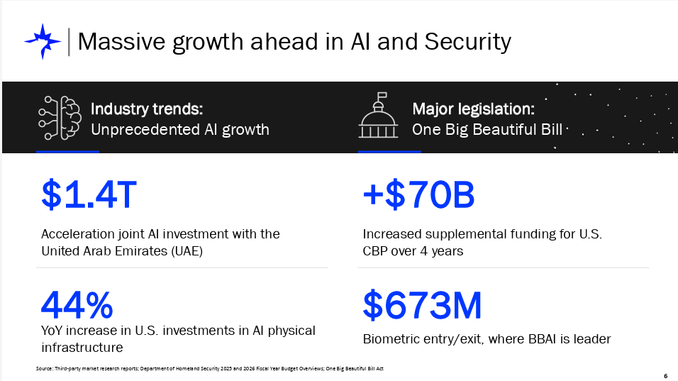 押注政府資金(「一份又大又美的法案」):管理層將公司的未來與一項潛在的巨額政府支出法案緊密相連。該法案預計將為國土安全部提供1,700億美元的補充資金,並為國防部提供1,500億美元用於「顛覆性國防技術」。執行長稱之為「轉型級別的投資」,並認為這與BBAI作為一家專注於國家和邊境安全的「任務就緒型AI公司」的定位完全契合。