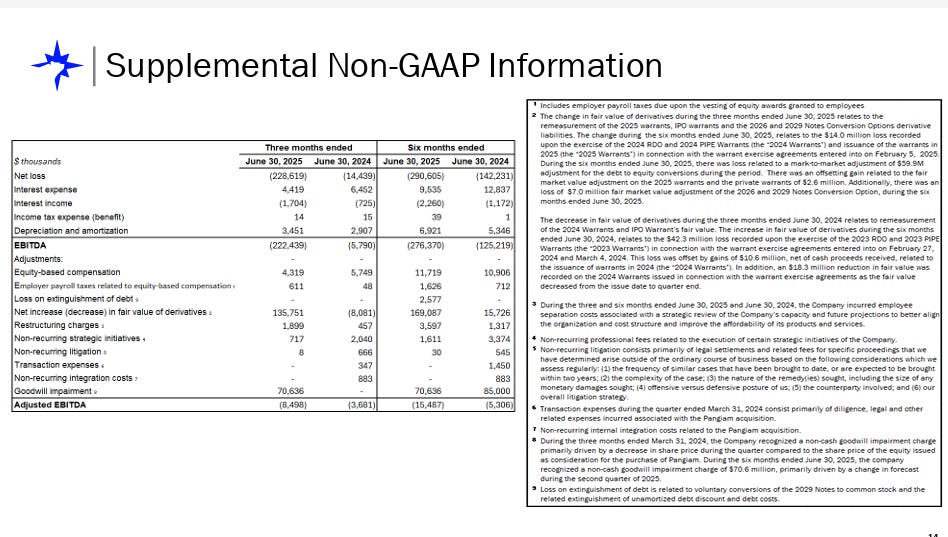 $1.358 億美元的非現金衍生品公允價值損失: 這個巨大的數字,主要與公司發行的可轉換債券和認股權證的會計價值重估有關。雖然它不影響公司的實際現金流,但它反映了公司複雜的資本結構所帶來的巨大財務波動性。