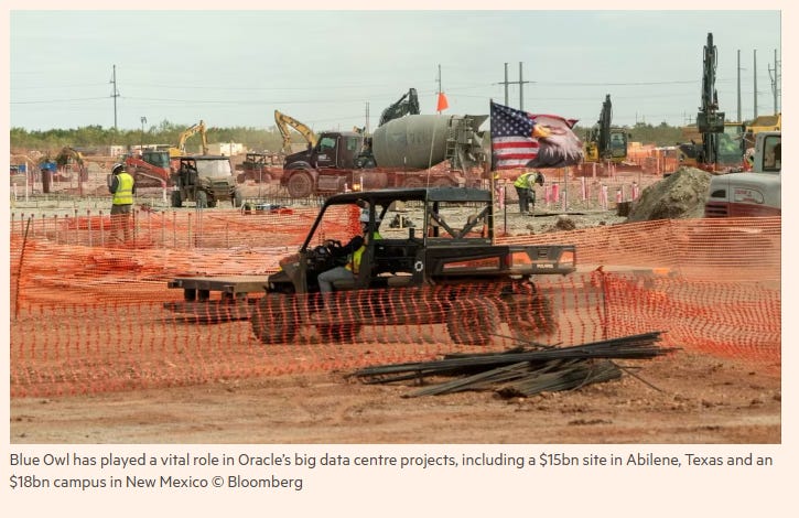 如果你盯著《金融時報》(Financial Times) 的頭條——「Blue Owl 退出 Oracle 的 100 億美元數據中心交易」—你也許會跟著那些無腦的演算法一起恐慌性地拋售 Oracle ORCL 0.00%↑ 的股票。