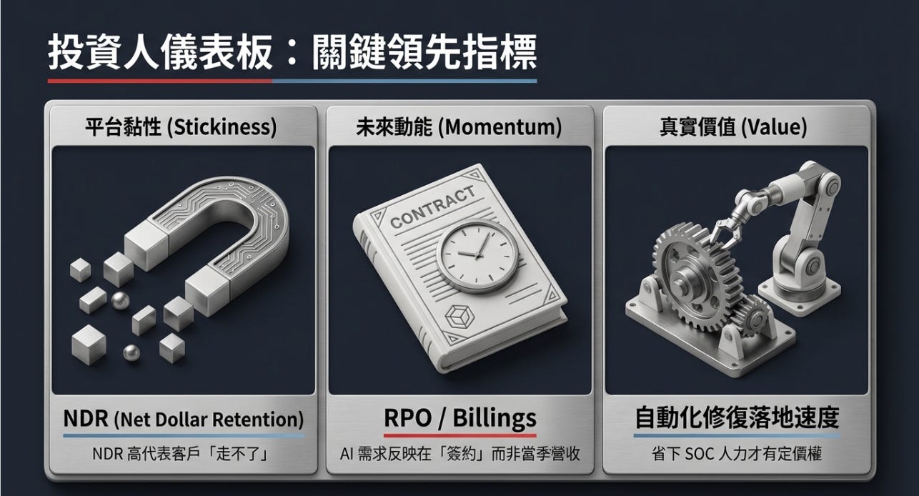 平台黏性(NDR / 模組滲透率):NDR 高不是因為客戶不會走,是因為客戶走不了(或不想走)。