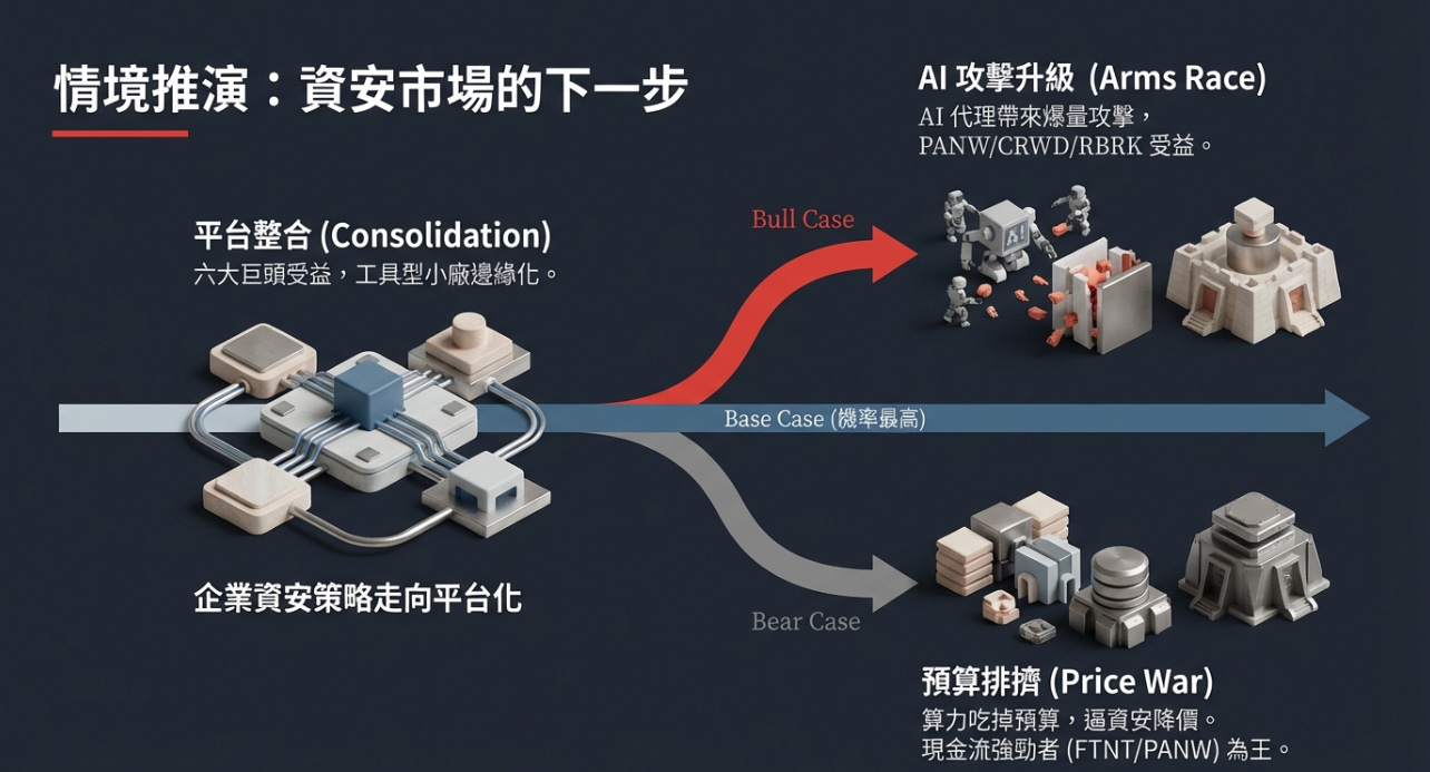 Base Case(機率最高),偏好 PANW / CRWD / ZS(封閉平台最強)。