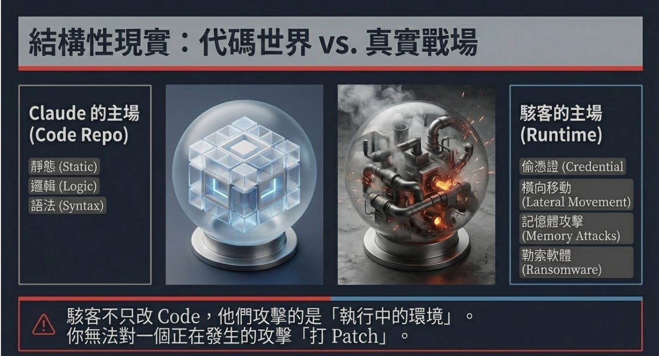 但冷靜想想它們兩邊的腳色:Claude 強在「程式碼世界」;資安巨頭強在「真實世界」。