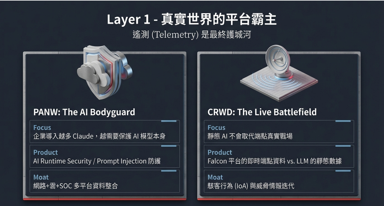 PANW 的強項不是「幫你讀 code」,而是它有企業真實環境的龐大遙測資料,能做 runtime 防禦、雲端防護、SOC 自動化。