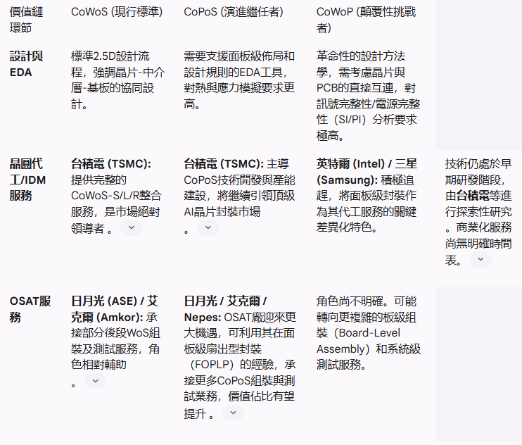 從CoWoS到CoPoS的演進,以及CoWoP的潛在興起是技術路線的更迭,更將引發半導體供應鏈的深刻重組。