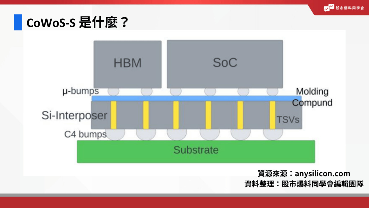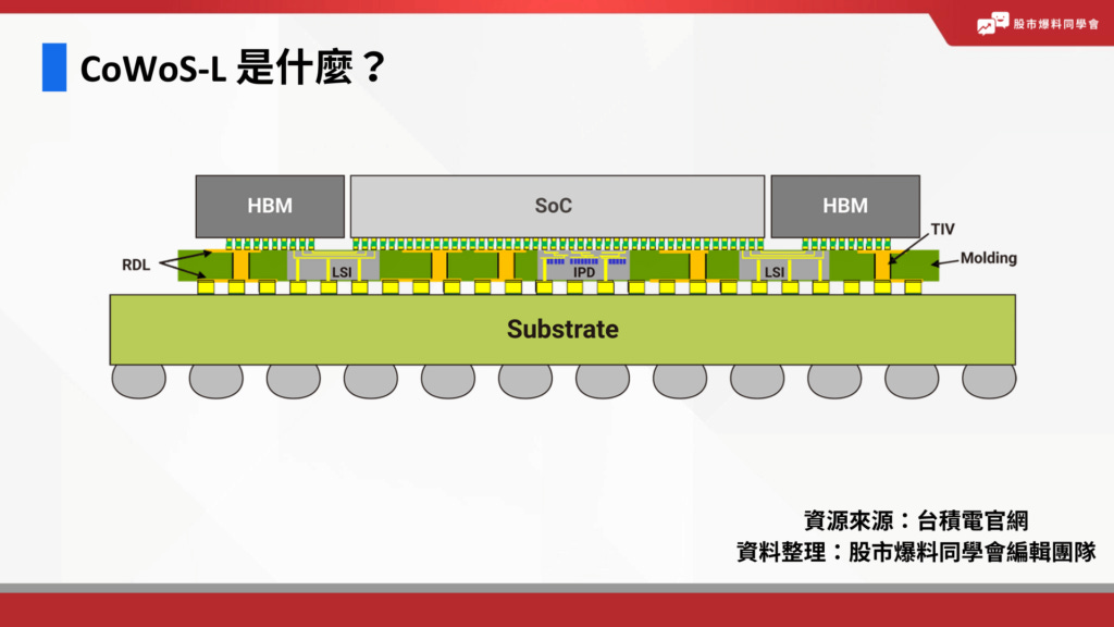 CoWoS技術是台積電開發的一種2.5D先進封裝技術,它透過將多個晶片並排整合在一個矽中介層(Silicon Interposer)上,再將此模組封裝於基板上,從而實現了前所未有的高密度互連 1。此技術的誕生,是解決AI與HPC應用中巨大算力與記憶體頻寬需求的關鍵。