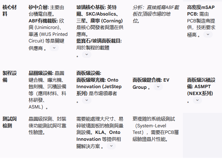 此一範式轉移將深刻重塑半導體供應鏈的價值分配。傳統有機載板供應商在頂級應用市場將面臨壓力,而價值鏈的重心將向掌握面板級製程設備的供應商(如Onto Innovation)以及具備玻璃基板量產能力的材料先驅(如SKC/Absolics)傾斜。本報告的投資論點基於此一結構性轉變,建議投資者關注那些在面板級封裝與玻璃基板生態系中佔據核心戰略地位的公司,它們將是引領並受益於下一代封裝革命的關鍵力量。
