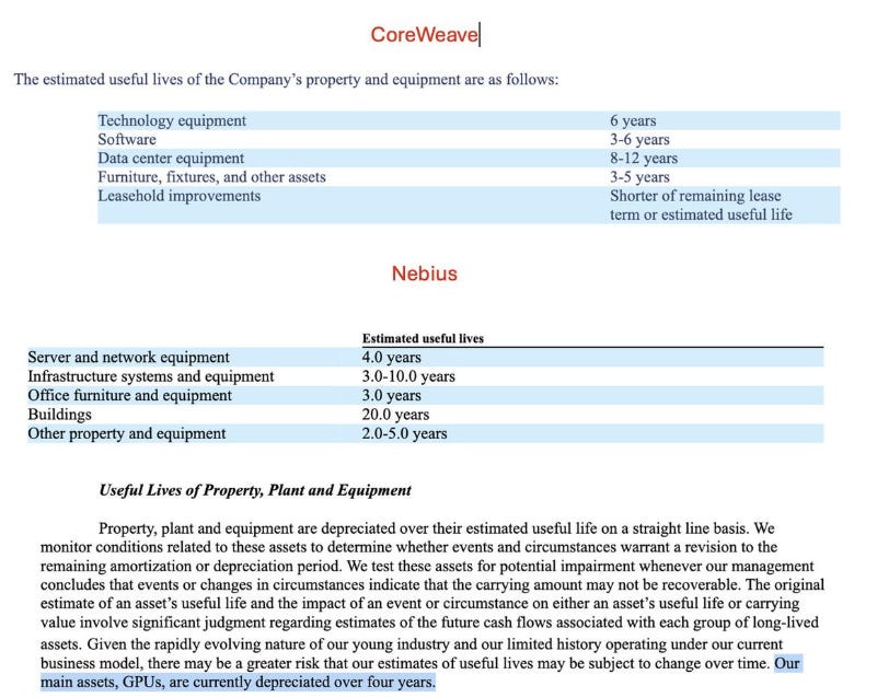 這兩家公司提供相似的服務,掌握相似的設備,營運模式幾乎一模一樣,但他們對「這塊 GPU 的價值會持續多久」這個問題,給出了截然不同的答案。這是會計上折舊選擇,決定了公司在資本市場中被如何看見。