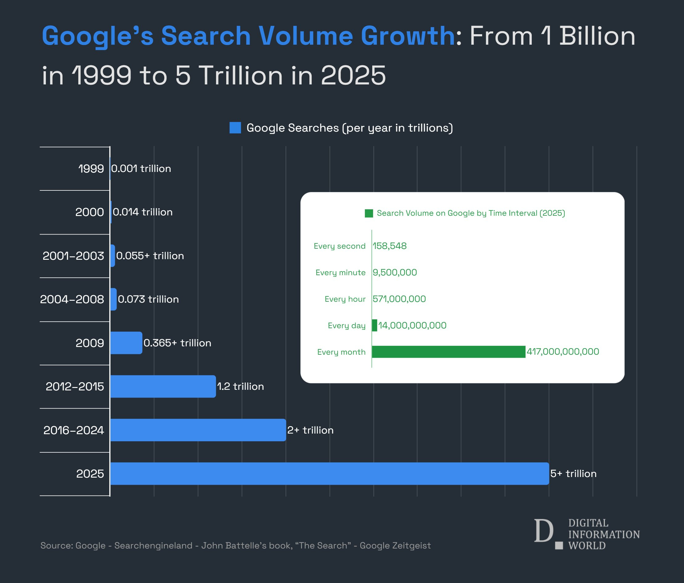 儘管人們擔心人工智慧會接管搜索,但谷歌的年度搜尋量首次突破 5 兆。還有什麼更好的?商業查詢量成長較快。
