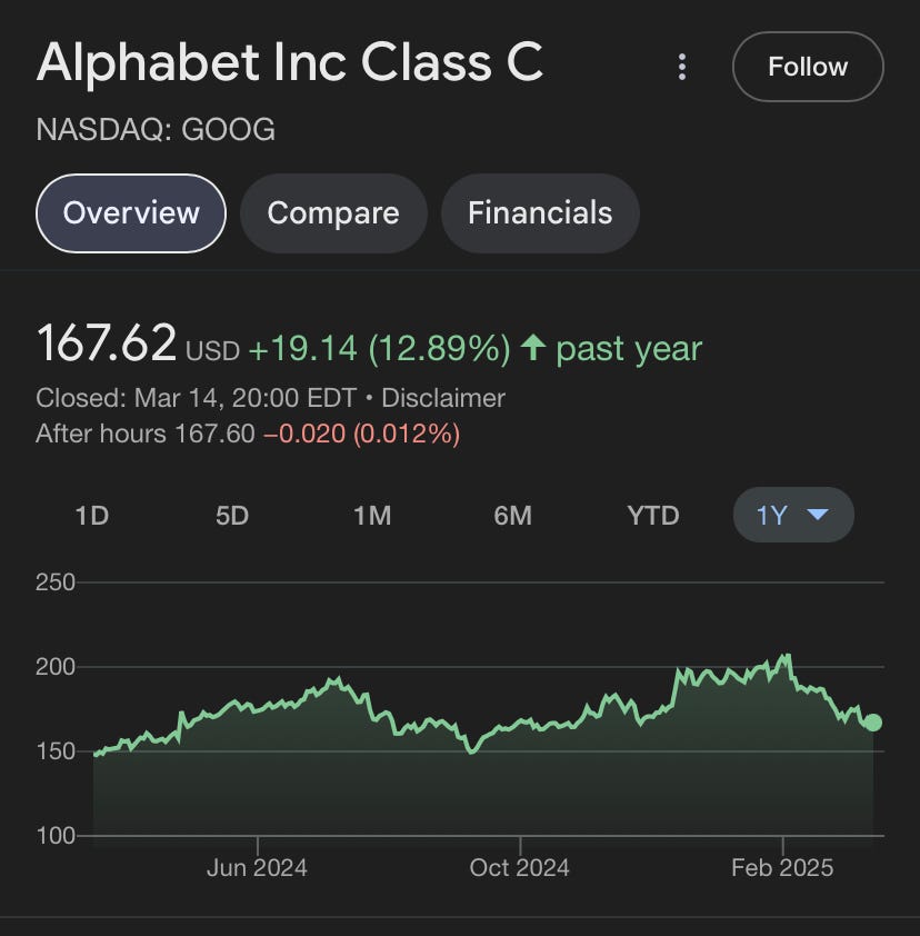 整體而言到 2030 年,GOOGLE 業務規模將達到 3.6 兆美元。假設折現率為10%,它的價值應該為2.2兆美元,但目前它的價值只有2兆美元,即使按照非常保守的假設,並且由於人工智慧威脅導致搜尋業務的本益比非常低,我們的估值仍然被低估了 10%。無論如何,對於像 #GOOG 這樣的優秀企業來說,這都是一筆很棒的交易。