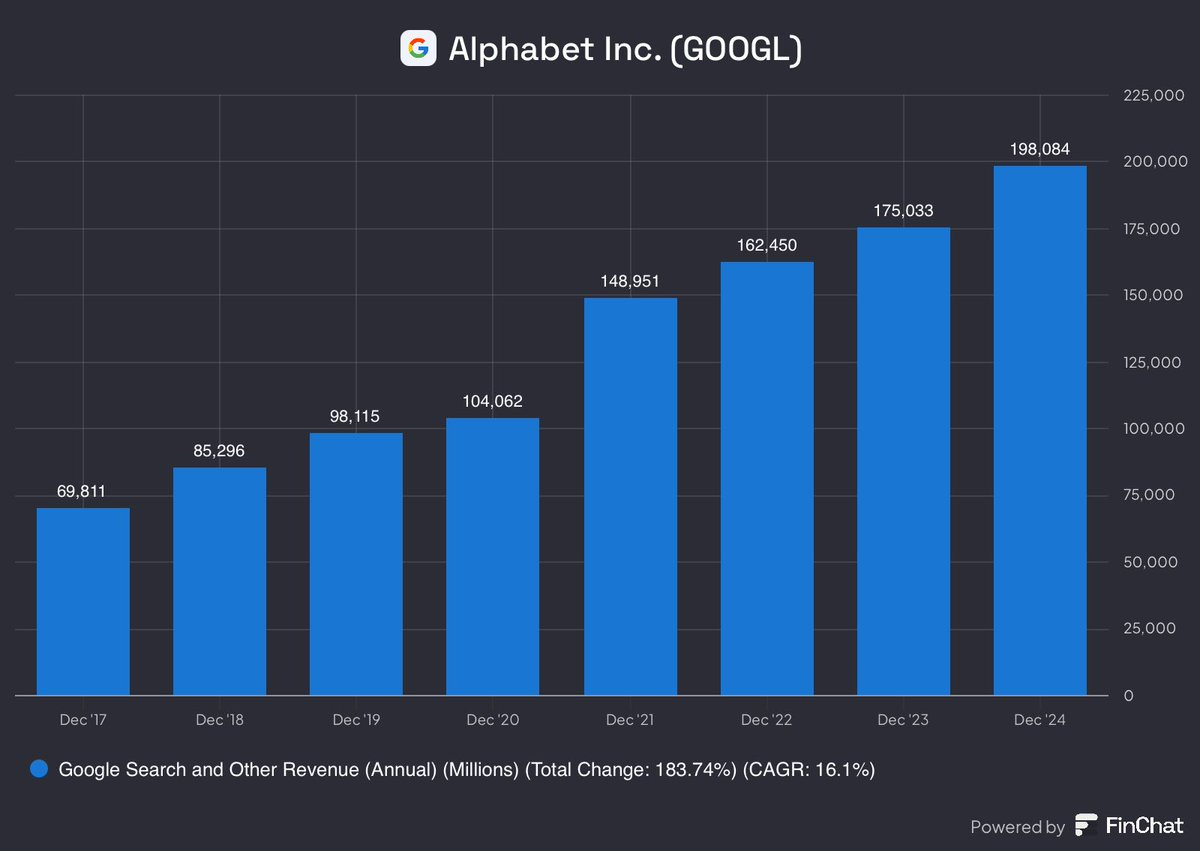 過去五年來,其收入成長率為 17%,淨收入成長率高達 25%,因為市場認為搜尋將會消亡。