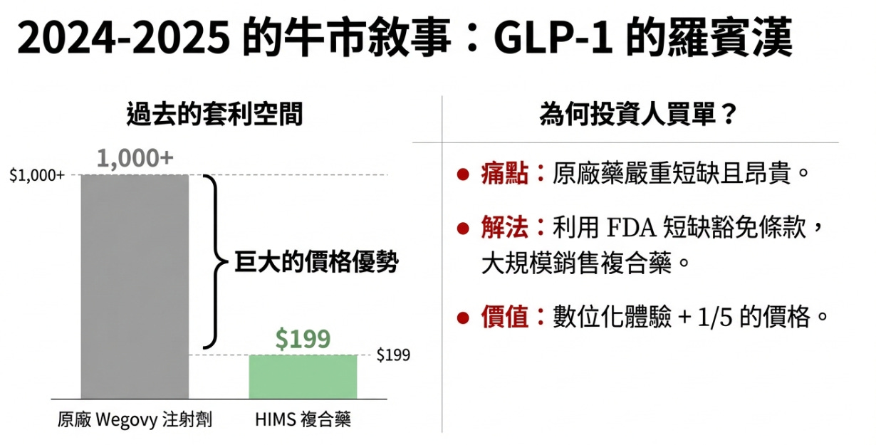 投資最困難的是如何判斷這個公司是否還能持有,HIMS 在 2024–2025 年賺到的錢,來自供應短缺。