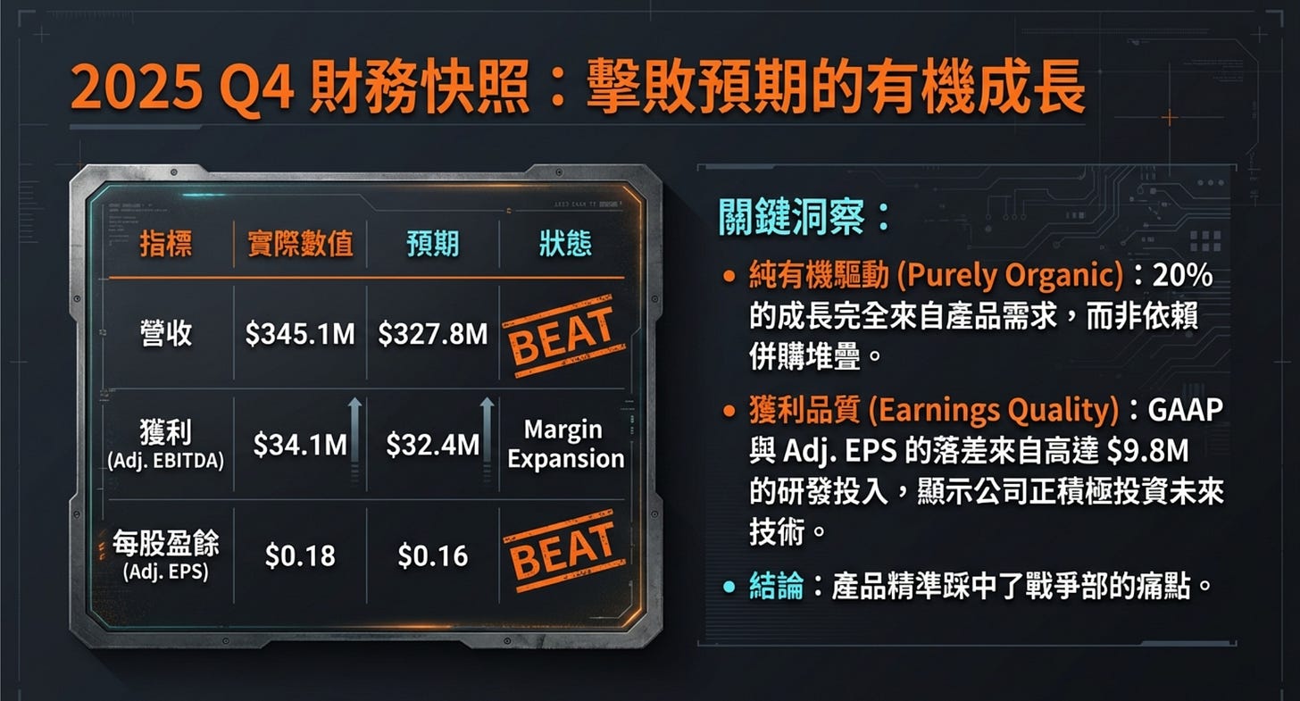 在 21.9% 的總增長中,有 20.0% 是Organic Growth。在併購頻繁的國防板塊,這種兩位數增長,證明產品精準踩中了戰爭部的痛點。