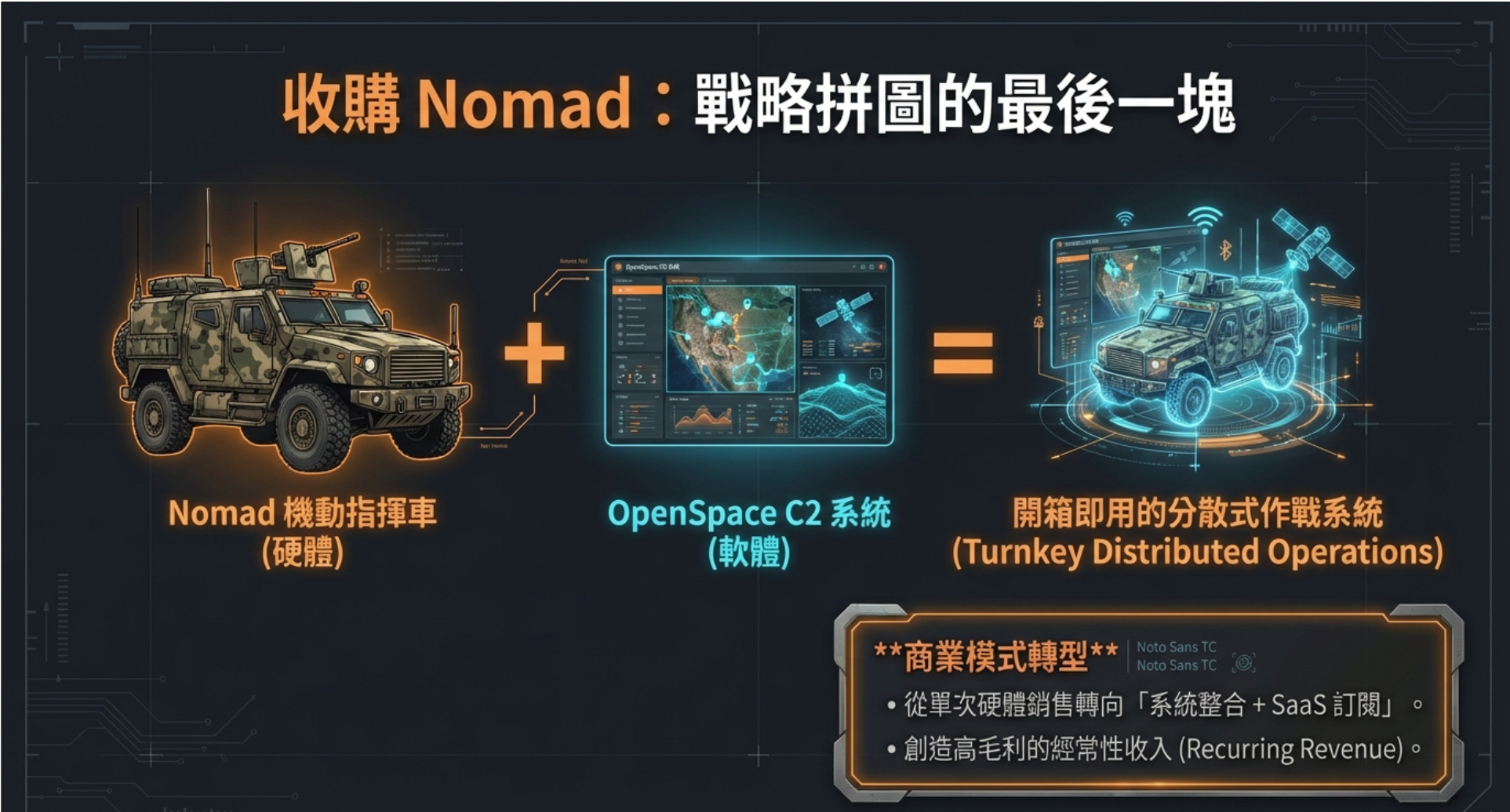 Nomad 專精於製造高度強固的移動式指揮與通訊中心。這與 Kratos 的無人機與太空業務完美契合。未來軍方購買 Valkyrie 無人機群時,將直接搭配搭載 OpenSpace 軟體的 Nomad 機動指揮車,形成一套無法被輕易摧毀的分散式作戰網絡。