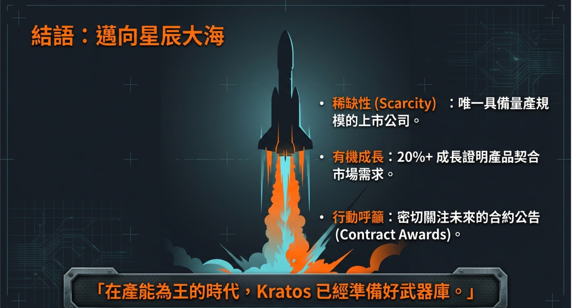 未來的股價催化劑是 「五角大廈的合約公告 (Contract Awards)」。只要新聞標題出現 Kratos 拿下任何關於 Valkyrie 的確定性量產訂單,股價可能朝向樂觀情境跳戰。
