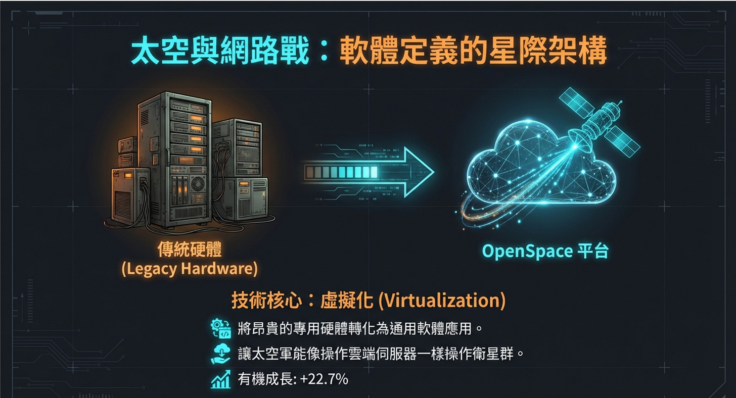 太空、訓練與網路 (Space, Training and Cyber):有機成長 22.7%。核心產品 OpenSpace 正在顛覆傳統太空產業。過去衛星的地面控制站依賴龐大昂貴的硬體;OpenSpace 則將其軟體化、虛擬化 (Software-defined),讓美國太空軍與商業衛星營運商能在雲端直接控制衛星陣列。