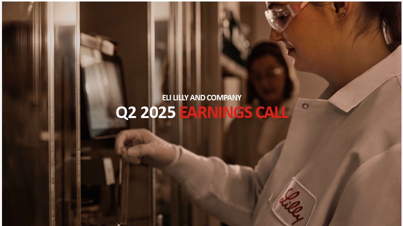 #LLY | 禮來公司2025年第二季業績亮點王朝的巔峰時刻,管線與產能共築未來護城河大叔美股筆記 Uncle Stock NotesAug 08, 2025∙ Paid5132Share正式宣告了其在全球最受矚目的心血管代謝 (Cardiometabolic) 藥物領域——即糖尿病與減重市場—無可爭議的王者地位。現在的統治力,體現在其兩大王牌產品 Zepbound 和 Mounjaro 如同印鈔機般、遠超預期的銷售額,共同推動公司實現了驚人的增長和盈利。未來的護城河,則體現在其令人振奮的產品管線(Pipeline)的持續推進,從下一代的口服減重藥,到在腫瘤和阿茲海默症領域的突破,再到管理層對產能擴張的堅定承諾。這份報告從商業執行、財務表現到未來研發,幾乎在所有層面都堪稱完美。如何利用其當前的巨大成功,去構建一個更為強大、更難以被超越的未來帝國。Continue reading this post for free, courtesy of 大叔美股筆記 Uncle Stock Notes.Claim my free postOr purchase a paid subscription.