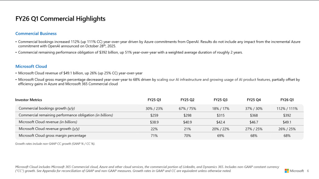 “微軟的剩餘履約義務(RPO)年增 51%,來到驚人的 3920 億美元,這是未來幾年穩定收入的保證書。”