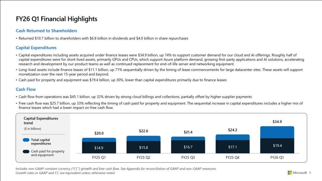 儘管有如此巨大的投資,微軟的整體營業利潤率仍然保持在驚人的 48.9%(380 億 / 777 億)。這證明了其軟體業務(特別是 Windows 和 Office)的利潤率是多麼豐厚,足以為這場昂貴的 AI 戰爭提供充足的彈藥”。
