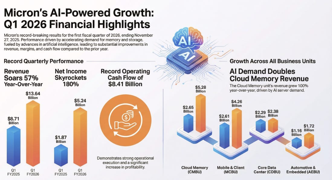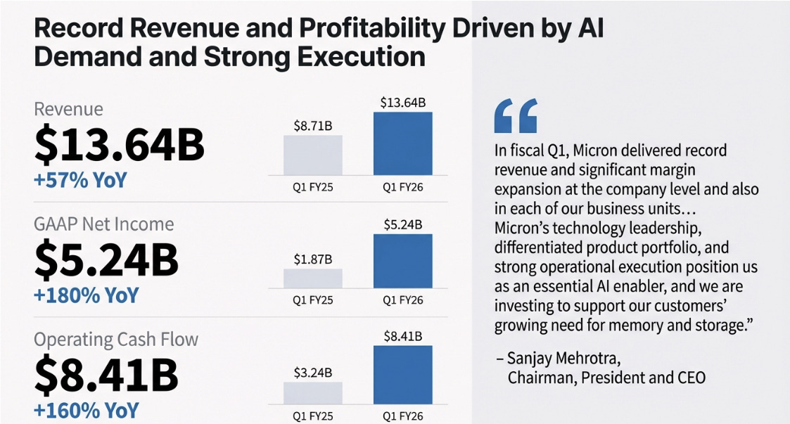 美光 2026 財年第一季財報,是半導體歷史的分水嶺,它正式宣告三件事: