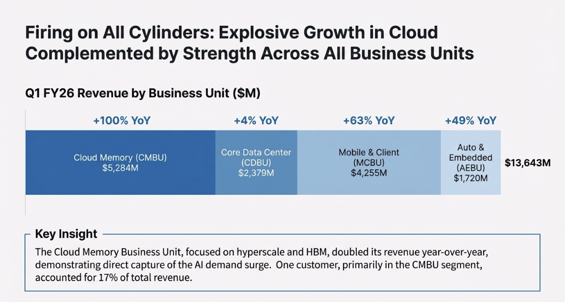 雲端記憶體業務 (Cloud Memory, CMBU):營收 52.8 億美元;毛利率 66%;營運利潤率 (OM) 55%