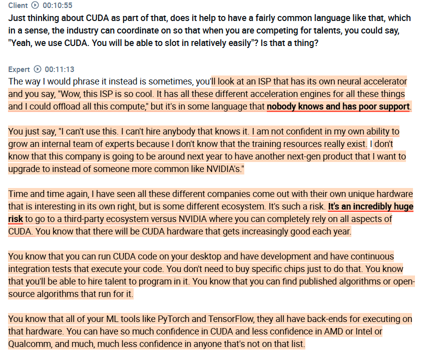 這也是為何儘管 AMD/Intel/QCOM 都有 AI 晶片,但市場還是最終圍繞 NVDA 構建。