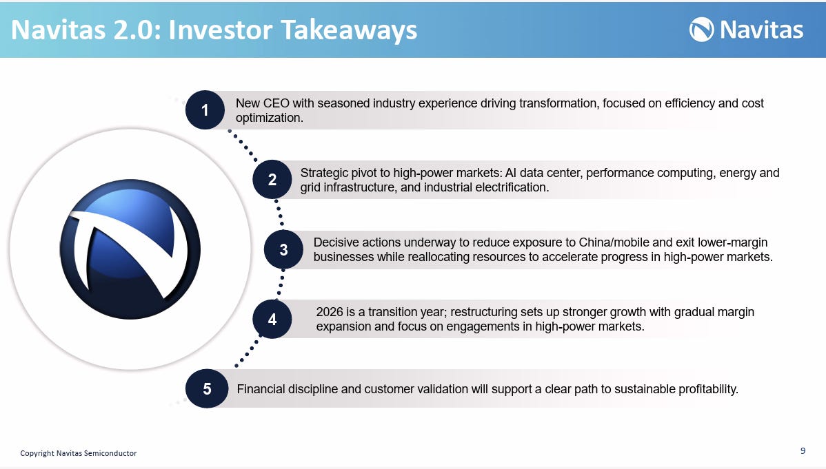 果斷清理 Navitas 1.0:徹底捨棄快充與手機晶片這類價格競爭無解的市場;