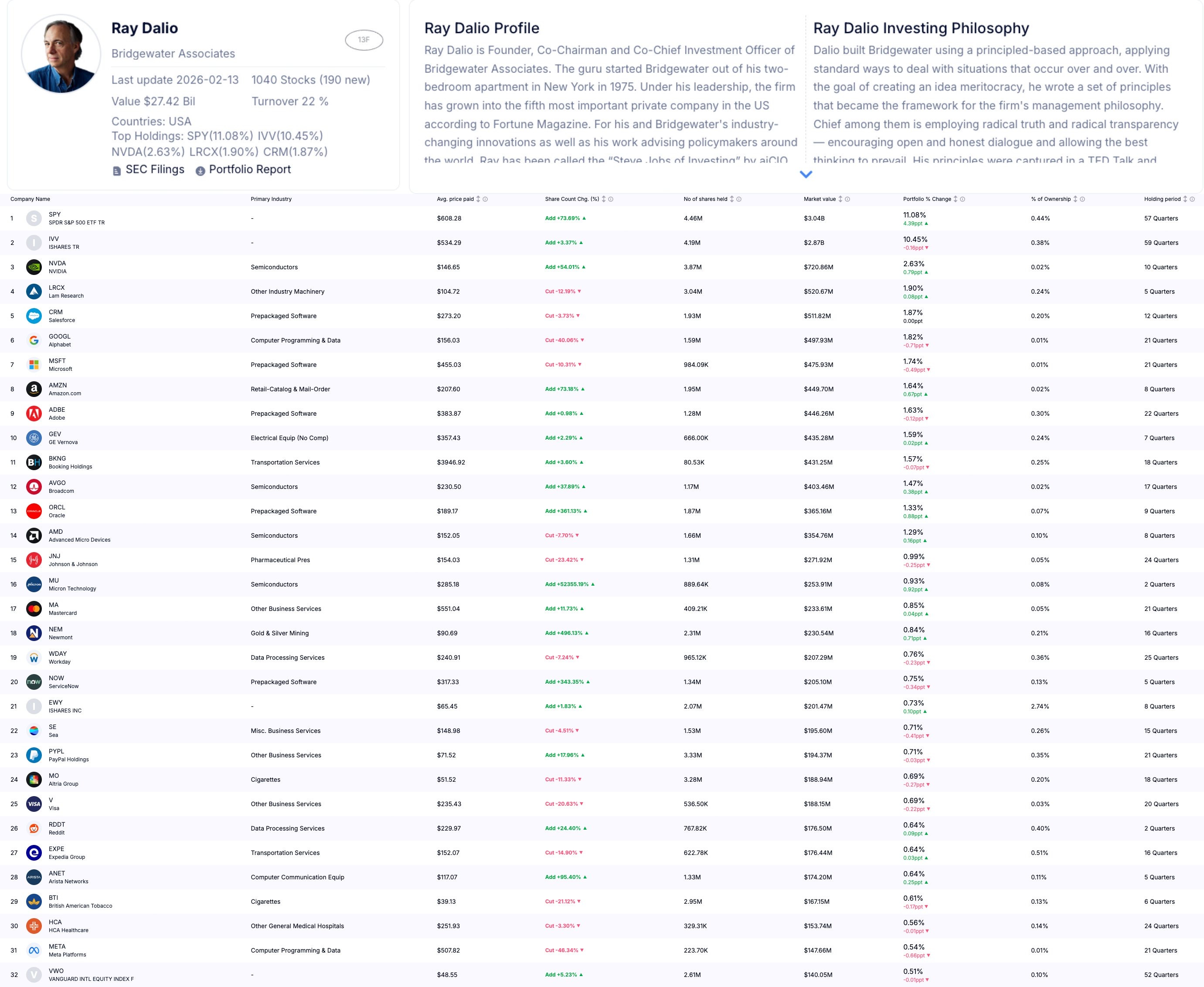 Ray Dalio 13F