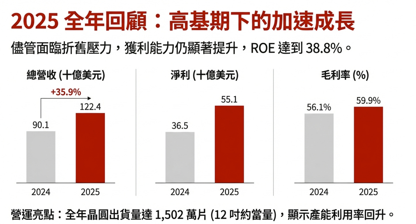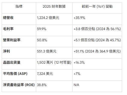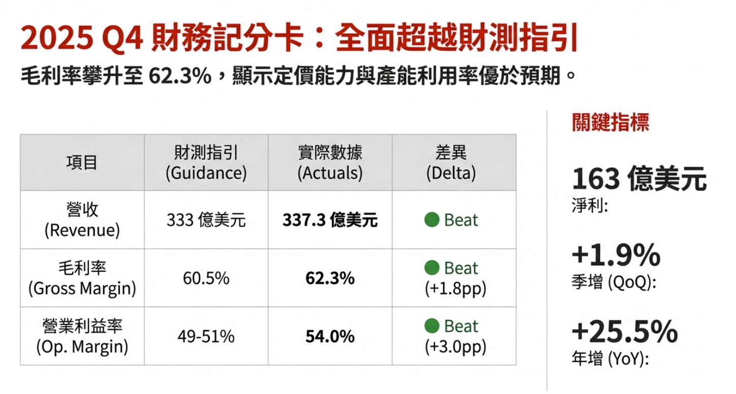 2025 年台積電在各項財務指標上均優於預期。