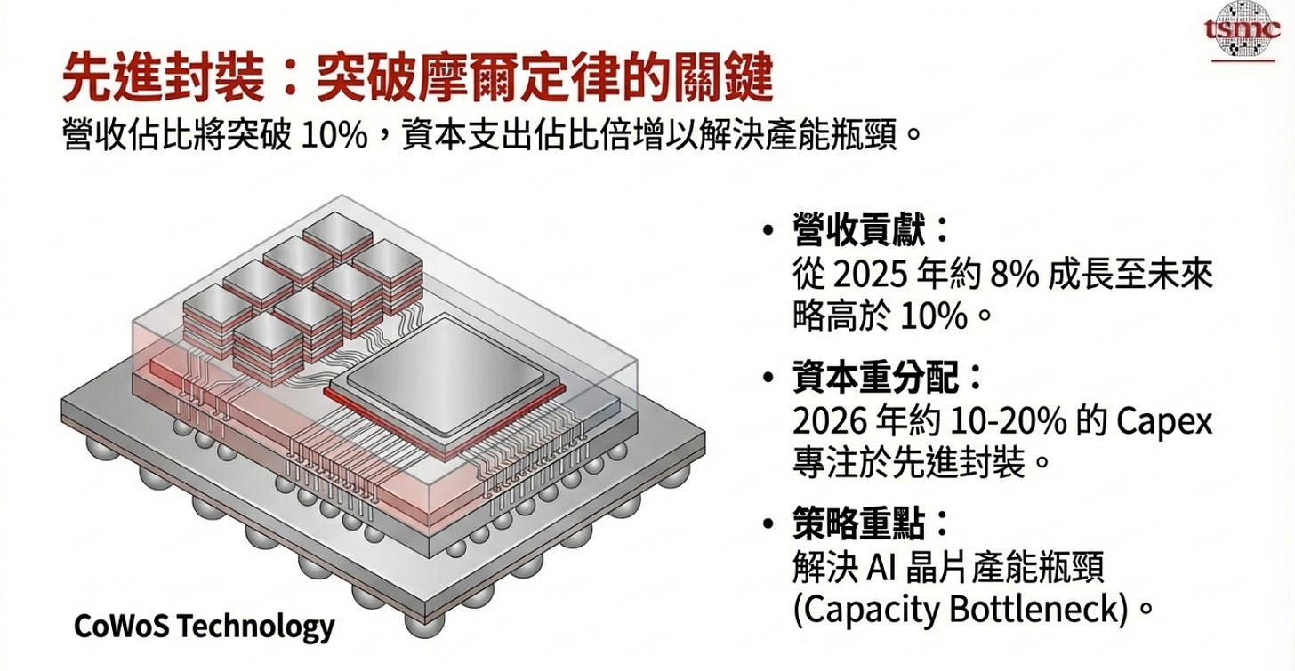 先進封裝: 2025 年營收佔比約 8%,預計未來將提升至 10% 以上。