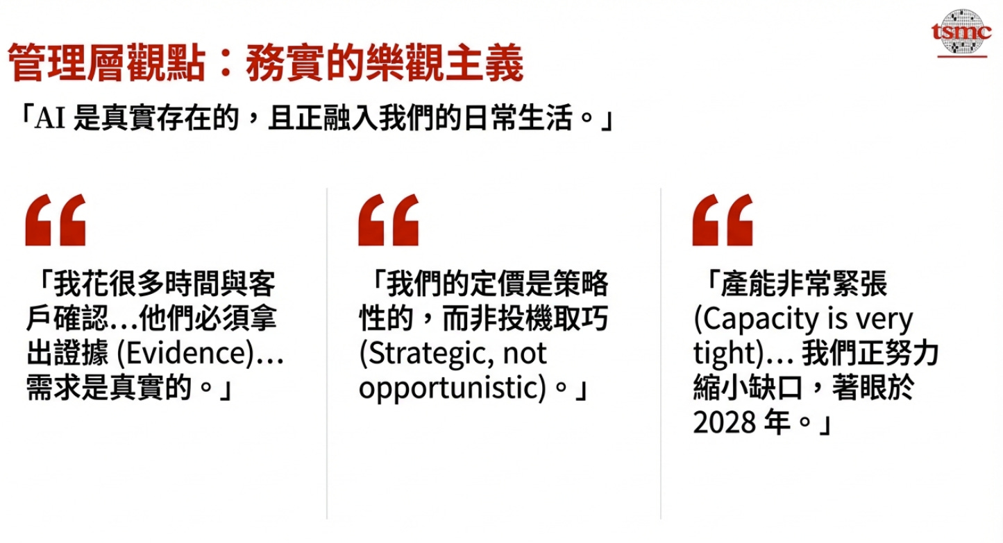 審慎投資: 雖然 AI 前景看好,但管理層對鉅額資本支出持謹慎態度,強調需確保需求真實存在,以避免「巨大的災難」。
