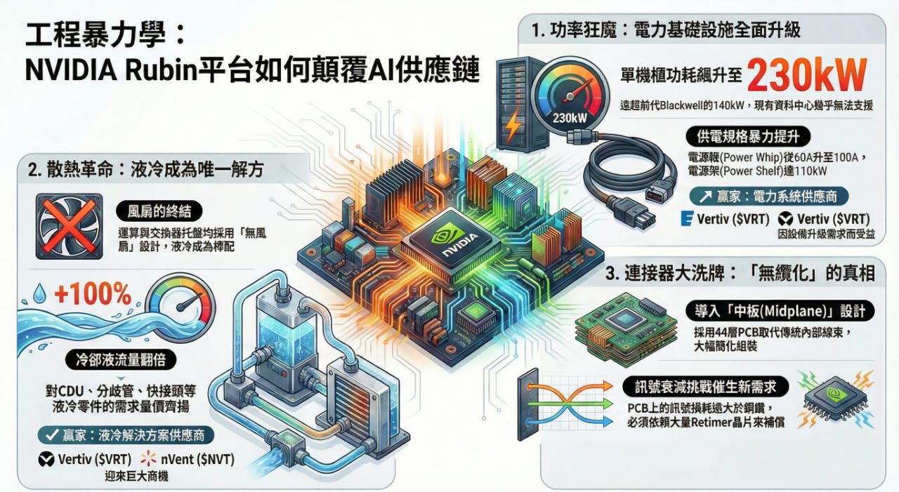 更熱、更密、更貴,不惜一切代價,把摩爾定律用物理方式延壽。如果你還分不清 GB200(Blackwell) 跟 VR200(Vera Rubin) 的本質差異,你會錯過 2026 年整條供應鏈的機會。